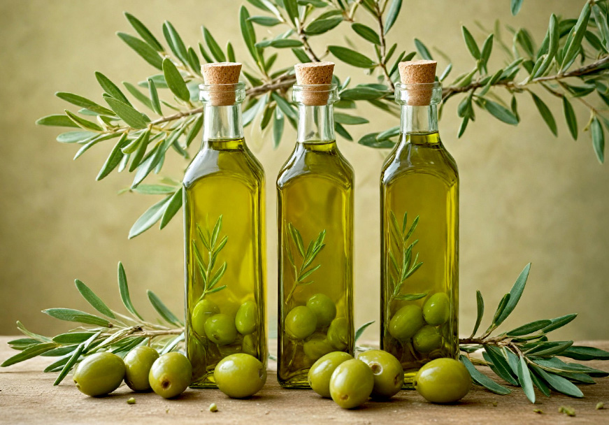 Olive oil is produced by crushing, milling, and pitting olives to extract their oil. It contains a high amount of beneficial fats, as well as vitamins E and K, numerous antioxidants, and anti-inflammatory properties.