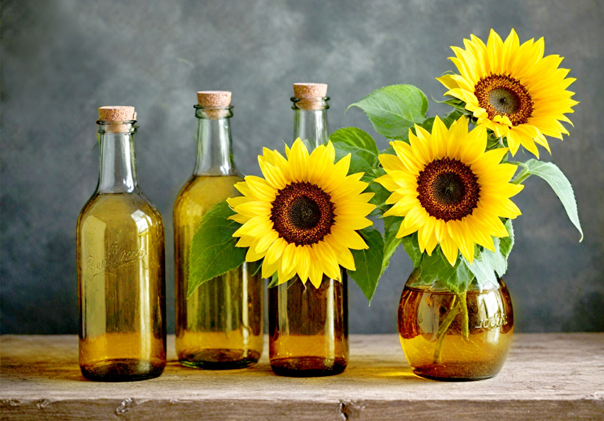 Sunflower oil is produced by extracting oil from sunflower seeds, containing heart-healthy polyunsaturated and monounsaturated fats, along with vitamin E, a powerful antioxidant.